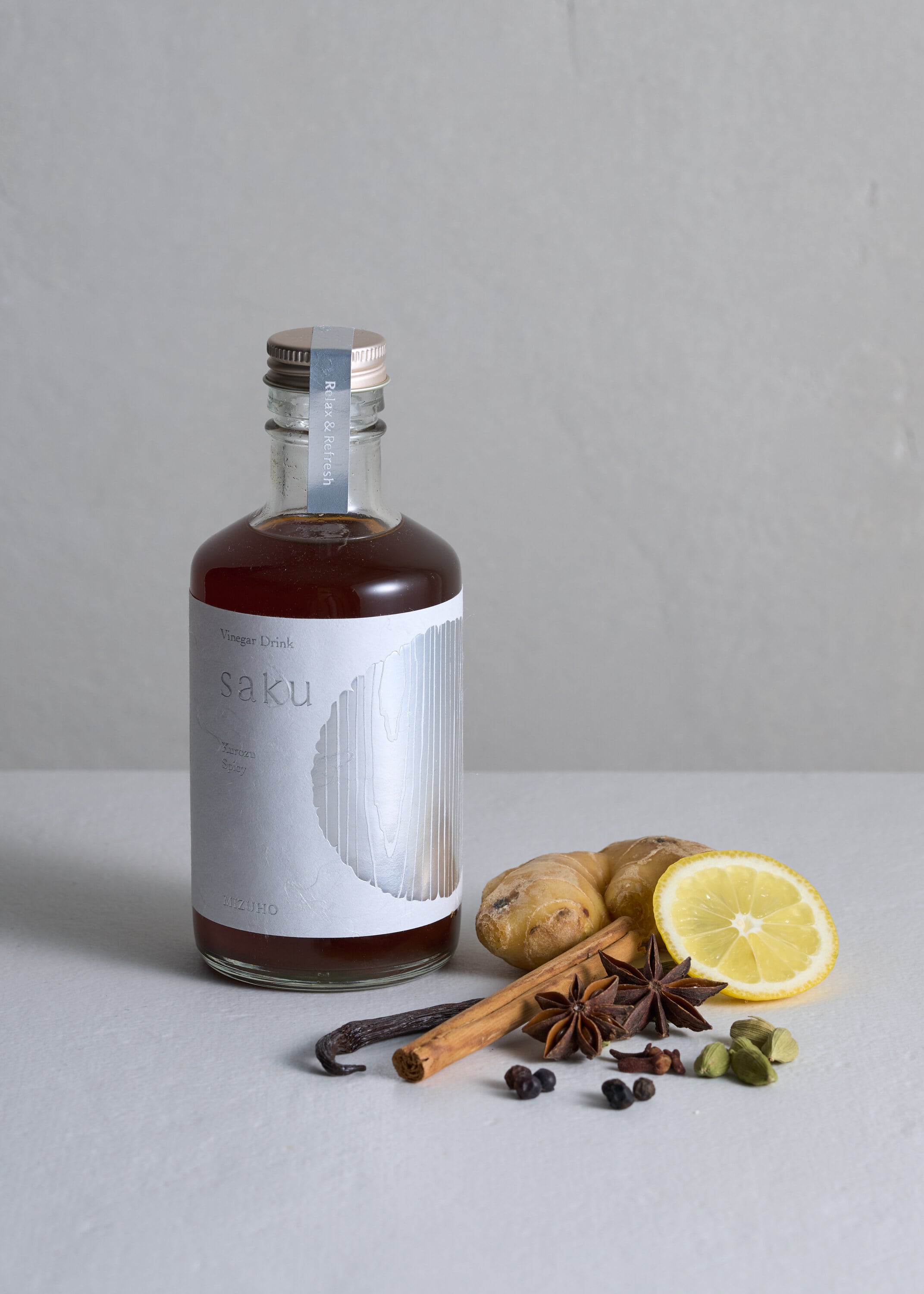 純玄米黒酢(国内製造)、砂糖、はちみつ、レモン、生姜、シナモン、カルダモン、八角、ジュニパーベリー、ブラックペッパー、クローブ、バニラビーン